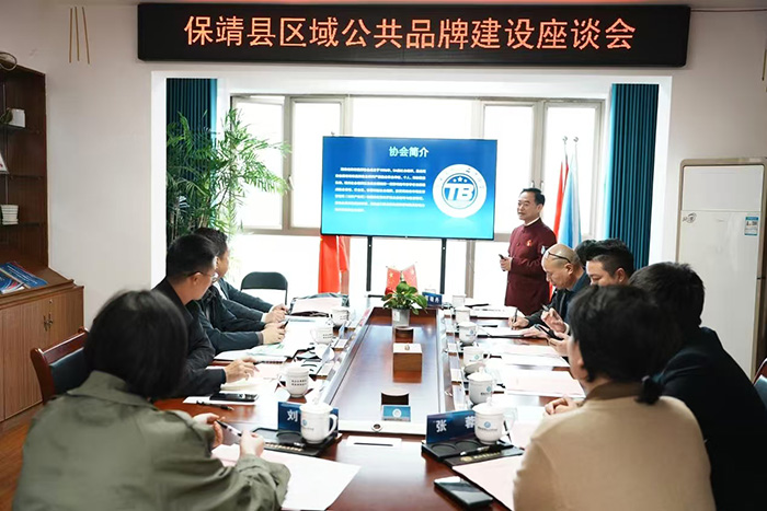 座谈会上,双方就保靖县区域公共品牌建设进行了探讨分析。朱增辉重点介绍了协会助力县域乡村振兴品牌建设和“湖南省知名商标品牌”的认定工作,并详细介绍了协会与贵州省清镇市、湖南省娄底市的品牌合作项目实施方案和项目进度计划,双方就知名品牌培育、区域公共品牌打造、知识产权培训、品牌传播、品牌强县等合作方向进行了深度交流,达成了初步的合作意向。